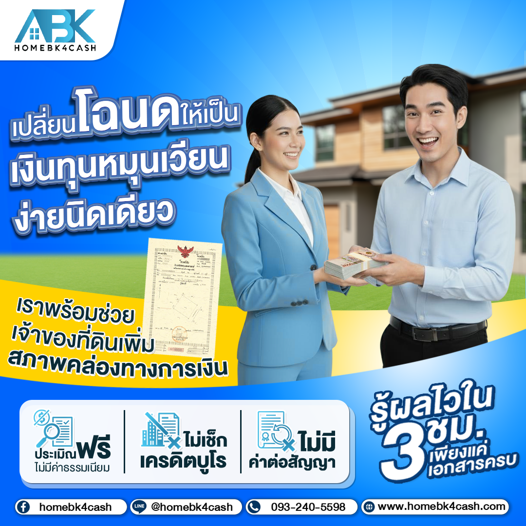 เพียงคุณมี “โฉนดที่ดิน” ก็สามารถเปลี่ยนเป็นเงินทุนได้ทันที!
